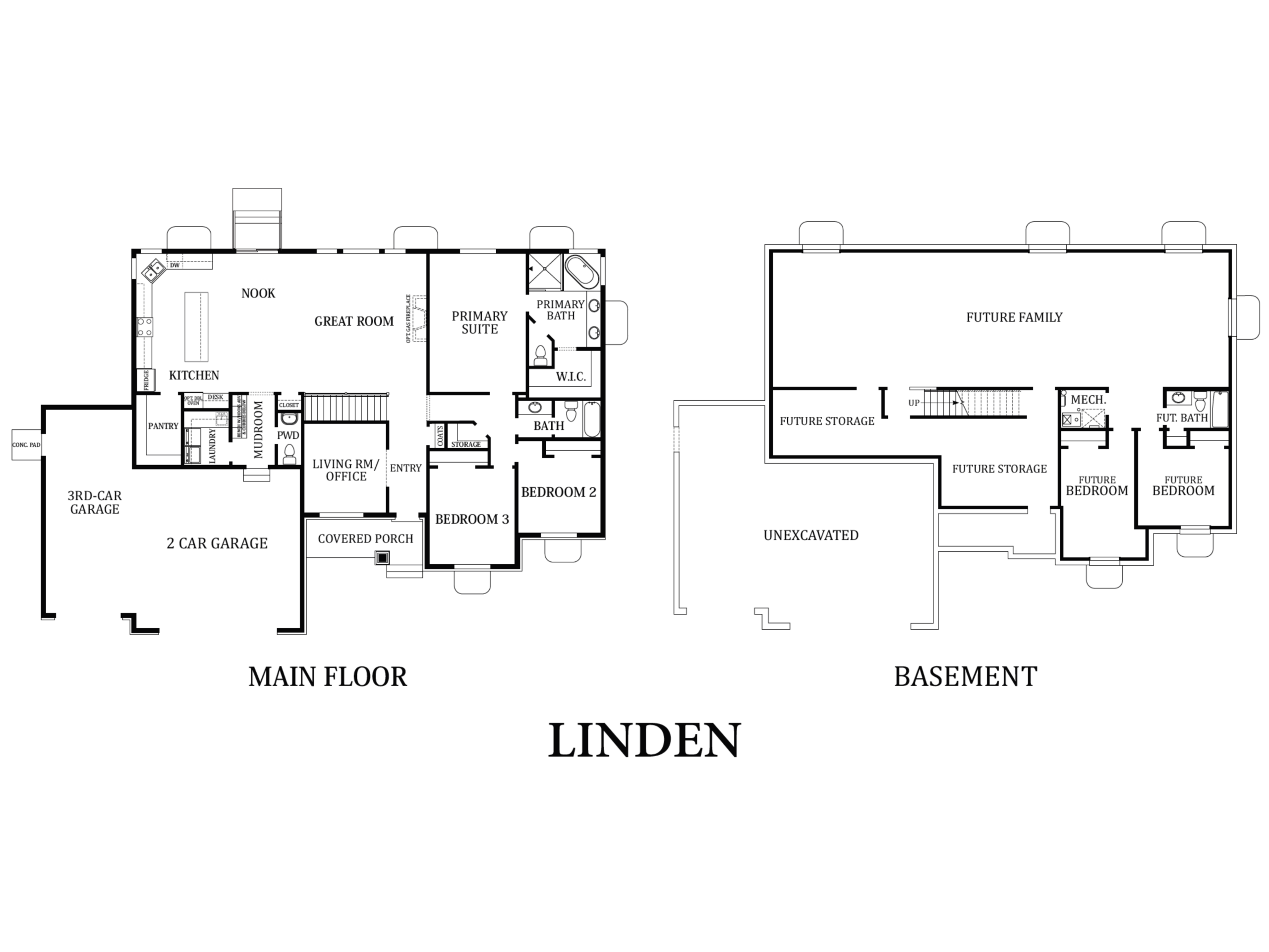 With a total square footage of 4,302 and a finished square footage of 2,152, the Linden is the perfect rambler home for large households. It comes with a spacious family area that’s located near the kitchen and nook, a separate living room, as well as 3 bedrooms and 2.5 baths. One of the bedrooms is a master suite that features its own master bath and walk-in closet. What’s more, it comes with an expansive garage that can fit 3 cars, as well as a homey veranda in the front.